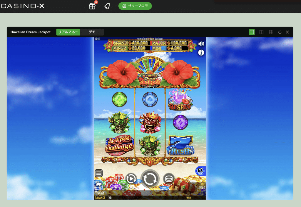 ウィンファーストスロットももちろんカジノエックスでプレイできます。最もパチスロに近い仕様と言われているハワイアンドリームのジャックポット版もあります。