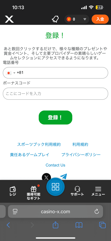 はい、必要です。本サイトの「こちらより登録」を必ずクリックして、ボーナスコードを入力して登録を完了すると、お得なcasino-x 入金不要ボーナスを獲得できます。